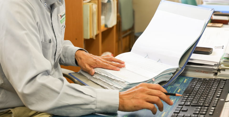 また、中間土場には出入りする車両の重さをはかるトラックスケールが設置されており、ここで木材の積載量が自動的に算出される。木材の種類などの情報も、ドライバーがQRコードをスキャンするだけで簡単に入力が可能。これらのデータは北信州森林組合の事務所に送られるため、リアルタイムで中間土場の状況を把握できるというわけだ。